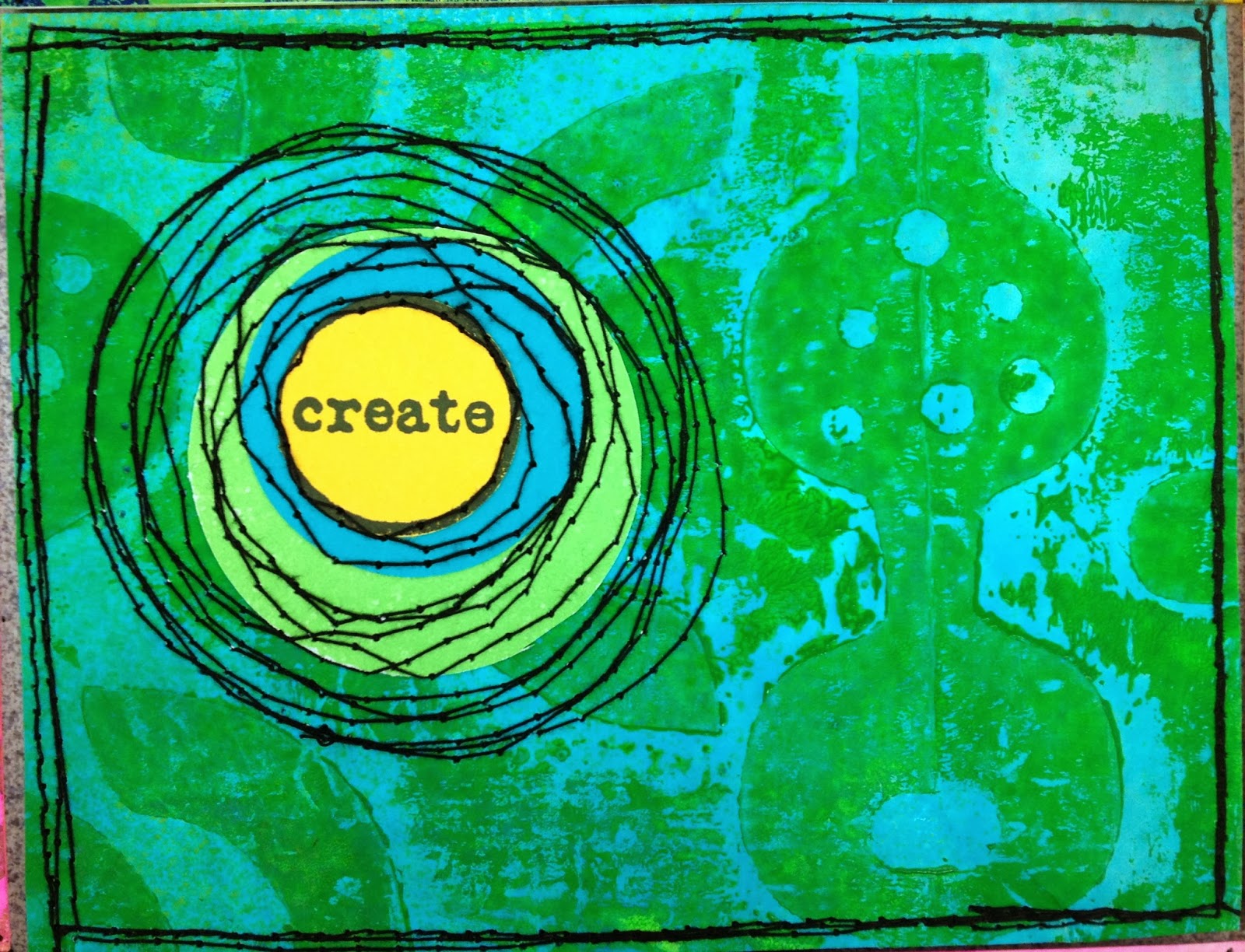I dug out one of my favorite rubber stamps. Gathered paper scraps and cut circles. Then it was time to add stitching on the sewing machine.